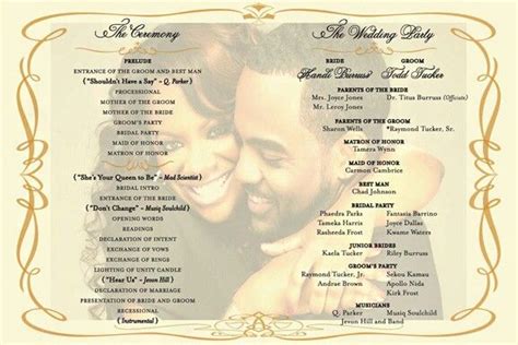 An important part of any wedding program is the special touches that make it personal and meaningful. Consider including a special poem, reading, or story that has special meaning to the couple. You could also include photos or mementos that are reflective of their family or relationship. These small touches will make the program truly special and memorable.